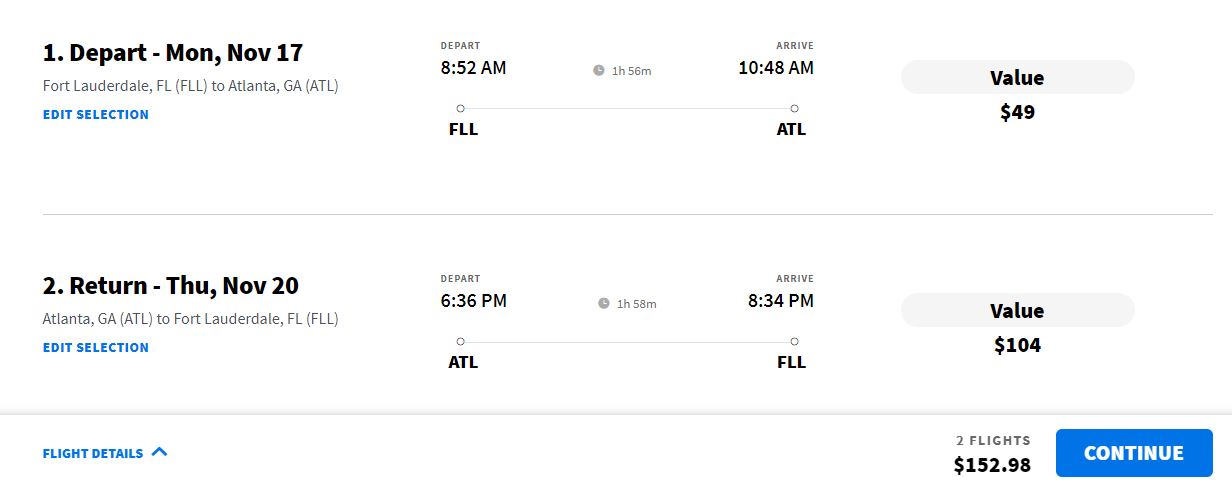 November: Fort Lauderdale - Atlanta (with return) from $153 with Spirit Airlines