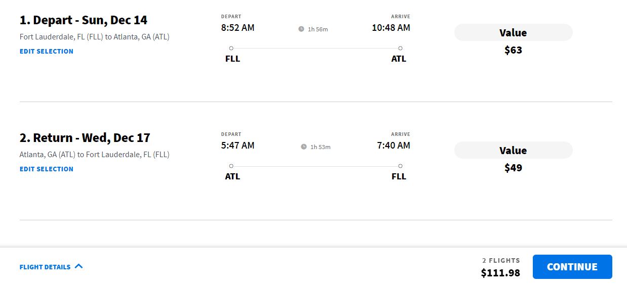 December: Fort Lauderdale - Atlanta (with return) from $111 with Spirit Airlines