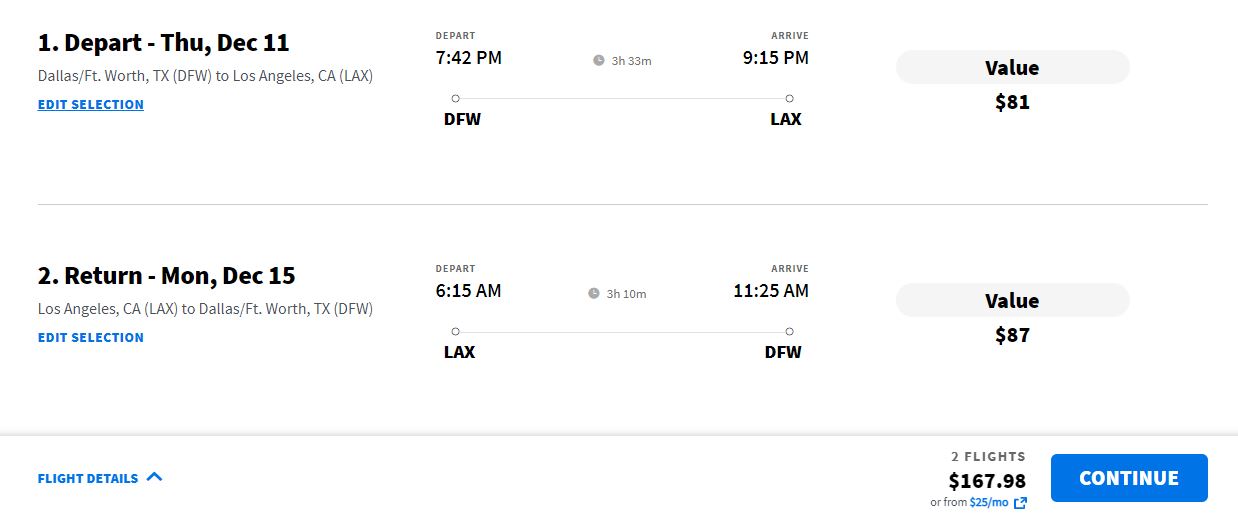 14/10/2025 08:46    December: Dallas - Los Angeles (with return) from $167 with Spirit Airlines