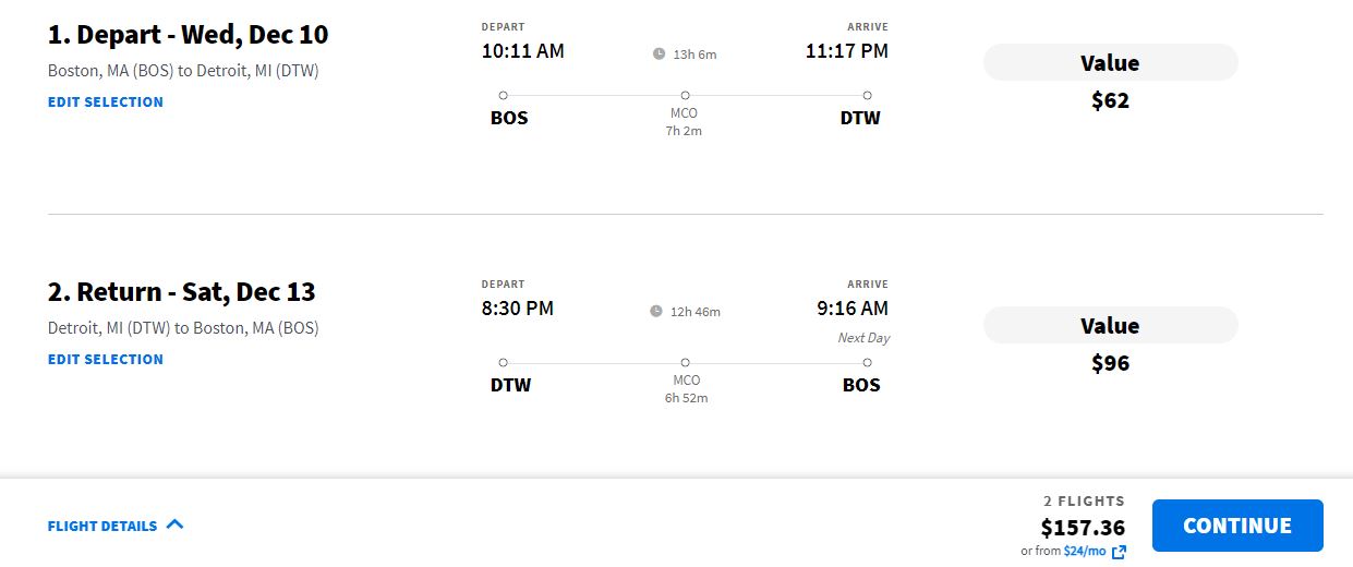 Boston - Detroit (with return) from $157