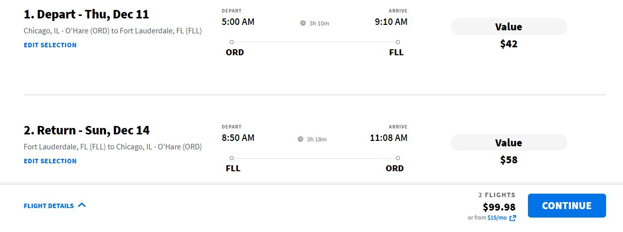 30/10/2025 13:01    December: Chicago - Fort Lauderdale (with return) from $99 with Spirit Airlines