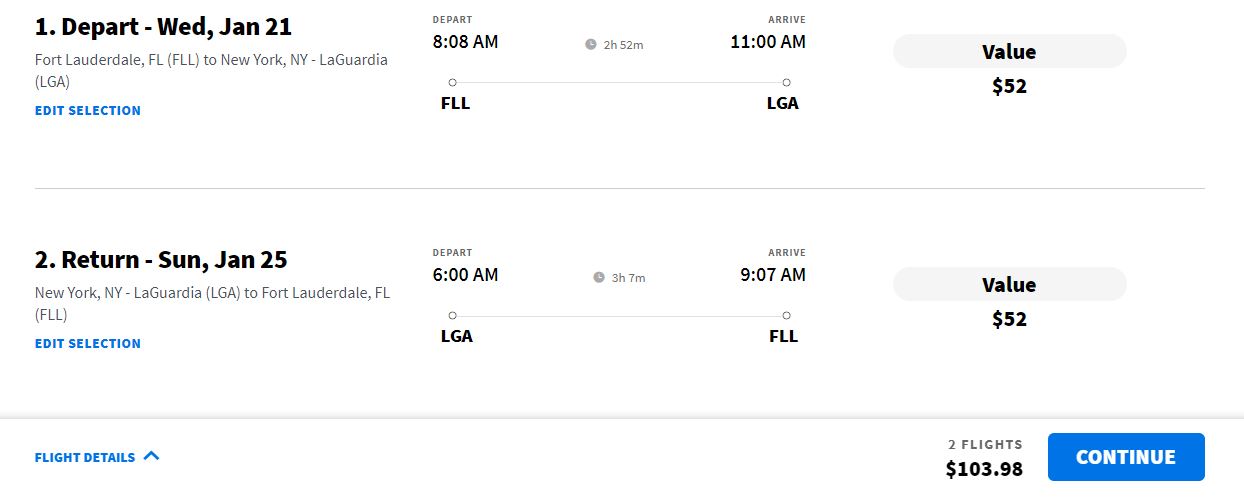 January: Fort Lauderdale - New York (with return) from $103 with Spirit Airlines