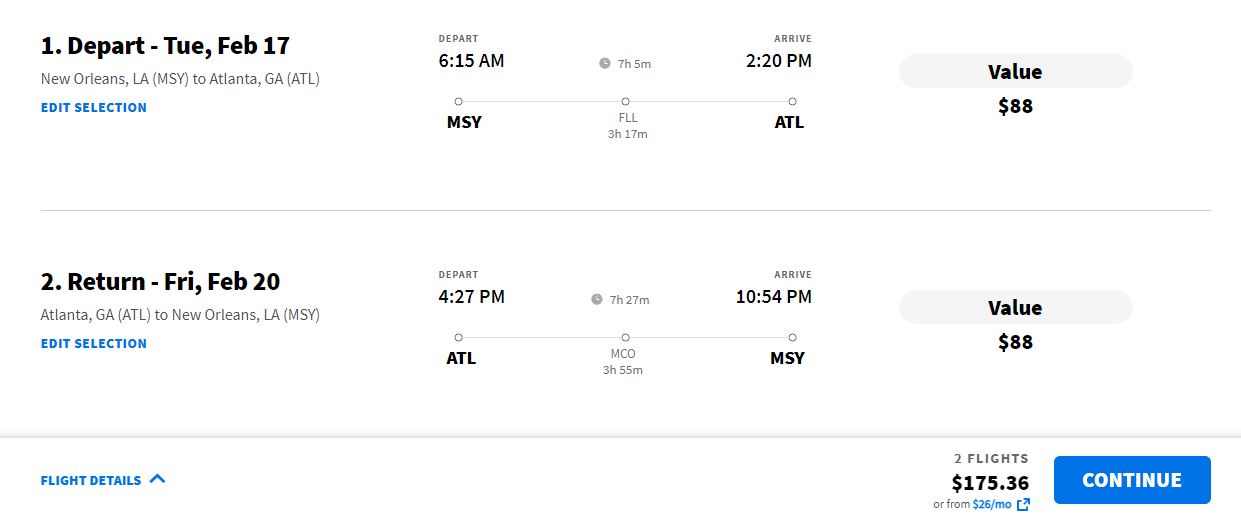 February: New Orleans - Atlanta (with return) from $175 with Spirit Airlines