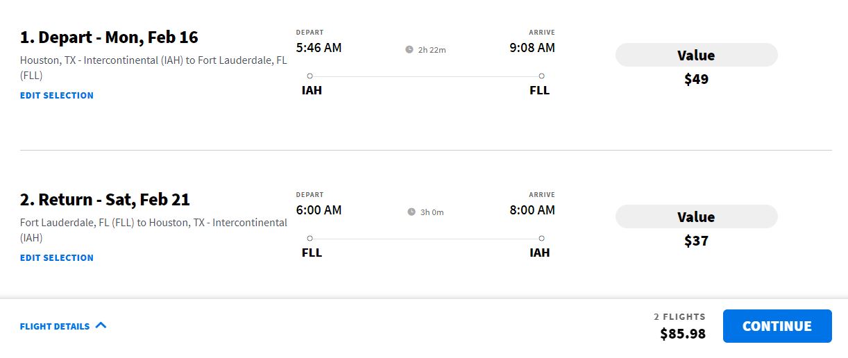 February: Houston - Fort Lauderdale (with return) from $85 with Spirit Airlines