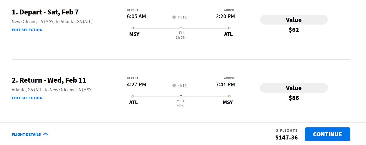 February: New Orleans - Atlanta (with return) from $147 with Spirit Airlines