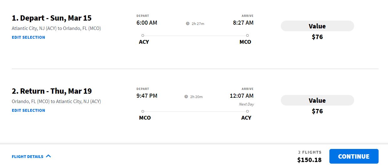 20/1/2026 14:40    March: Atlantic City - Orlando (with return) from $150 with Spirit Airlines
