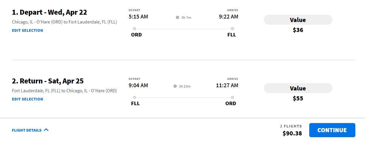 April: Chicago - Fort Lauderdale (with return) from $90 with Spirit Airlines