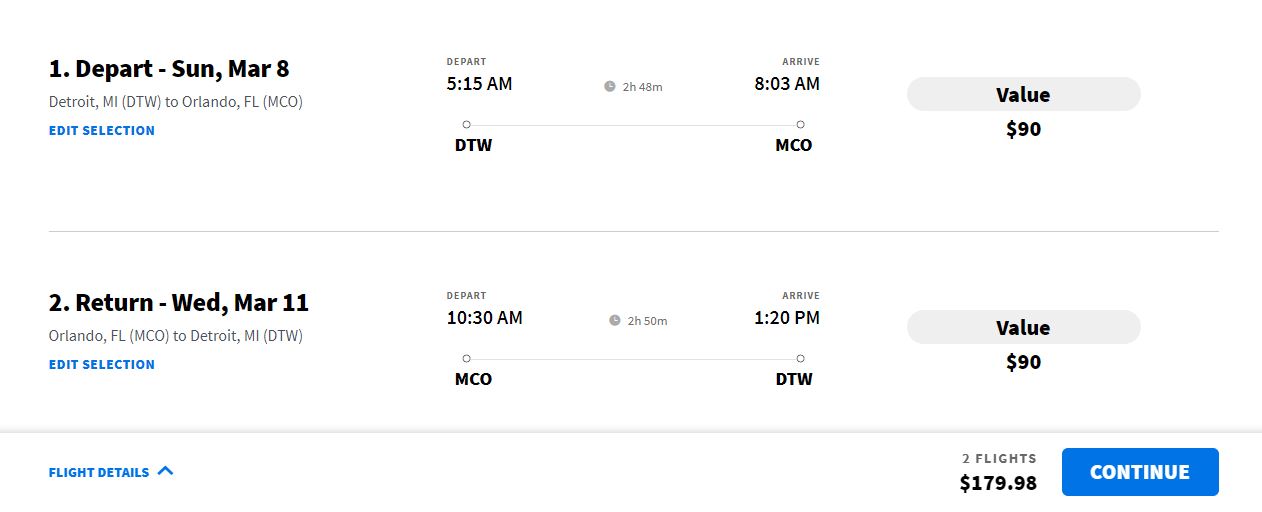 March: Detroit - Orlando (with return) from $179 with Spirit Airlines