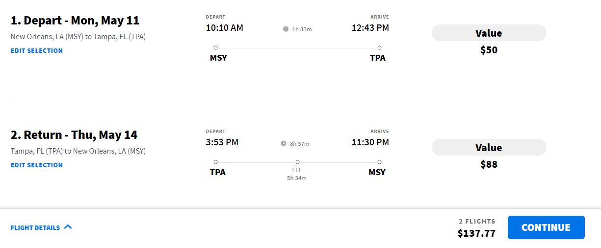 May: New Orleans - Tampa (with return) from $137 with Spirit Airlines