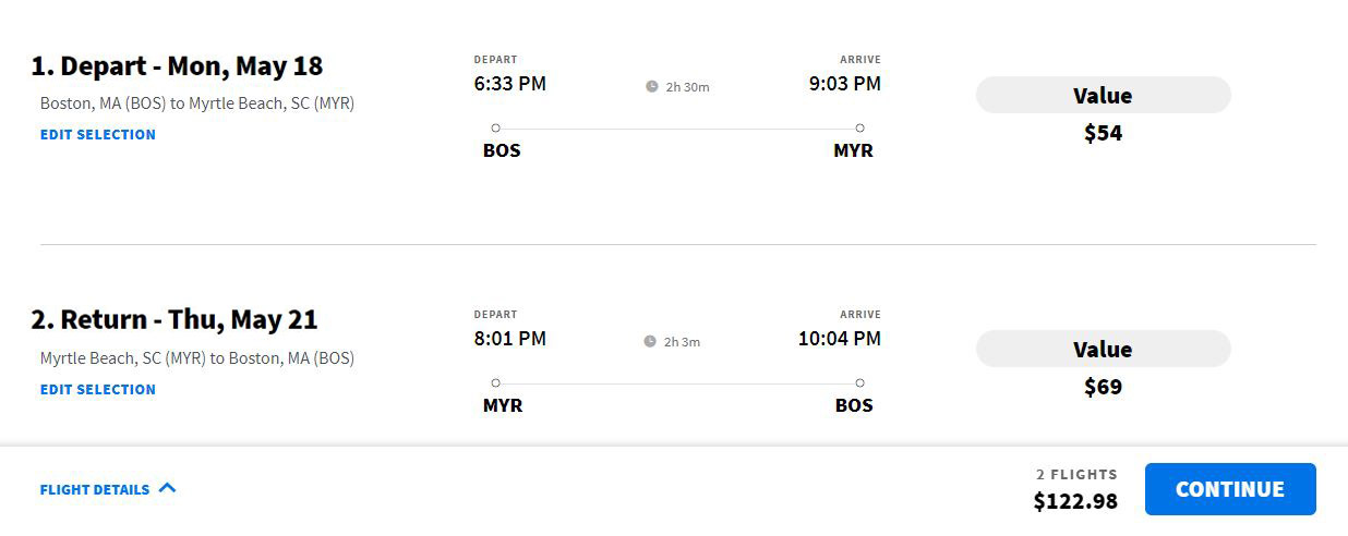 13/3/2026 13:58    May: Boston - Myrtle Beach (with return) from $123 with Spirit Airlines