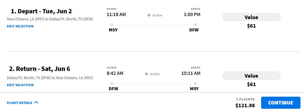 June: New Orleans - Dallas (with return) from $121 with Spirit Airlines