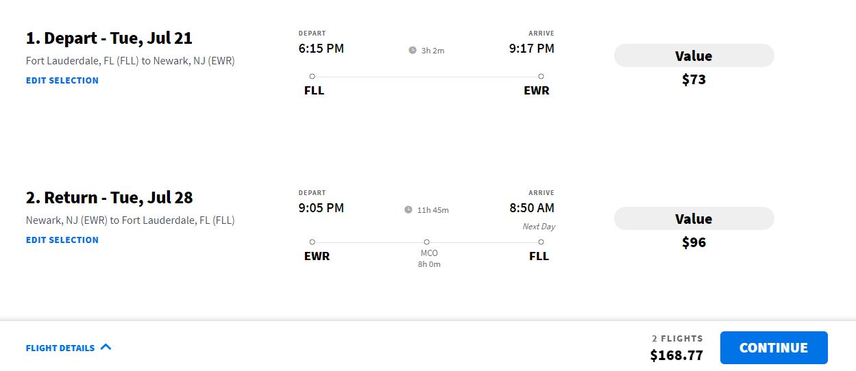 July: Fort Lauderdale - Newark (with return) from $169 with Spirit Airlines