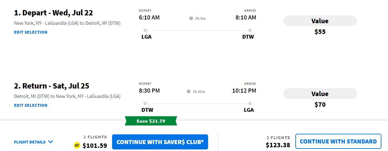 July: New York - Detroit (with return) from $123 with Spirit Airlines